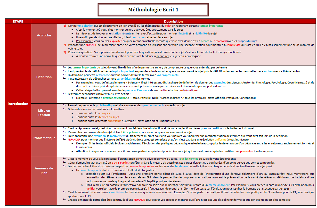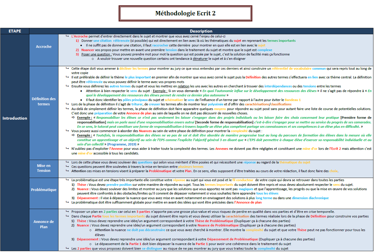 Pour plus de Méthodologies CAPEPS je t’invite à aller voir le site de l’A3 EPS qui détaille les différents temps de plusieurs méthodologies utilisables au concours en explicitant très bien les avantages et les inconvénients de chacune d’entre elles. Ce qu’ils développe sur leur site est franchement intéressant et je vous invite à vous appuyer sur ces différentes propositions méthodologiques pour construire la votre.